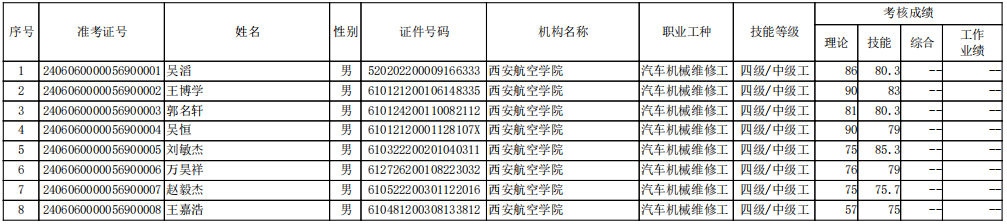 现将6月组织的汽车机械维修工评价结果予以公示。对公示情况有异议的,请于公示期内向beat365唯一官方网站反映。公示时间:2024年6月25日-6日29日。公示期结束,不再接受复核申请。联系电话:029-84255995。