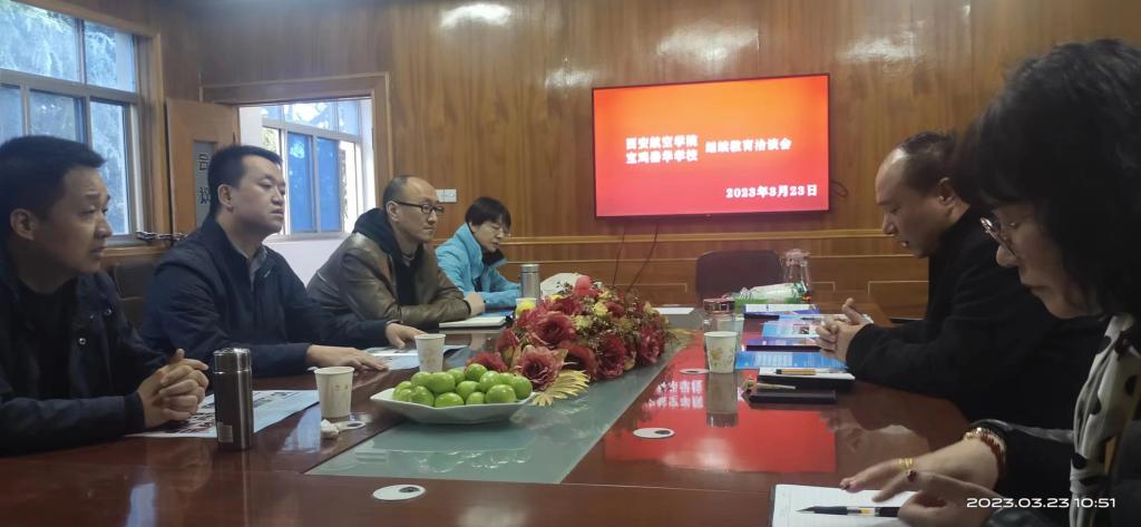 3月23日,图书馆直属党支部书记赵建涛、beat365唯一官方网站副院长苗海峰一行四人赴宝鸡秦华职业技术学校洽谈高等学历继续教育合作,宝鸡秦华职业技术学校校长杨伟军及相关负责人参加会议。
