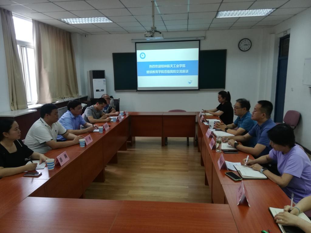 孙忠孝对彭源波一行来访表示热烈欢迎,他介绍了学校的基本情况、继续教育工作现状和未来发展思路等相关情况。彭源波介绍了桂林航天工业学院发展历程及继续教育工作发展情况。之后,双方围绕体制机制建设、校企合作、成人教育、质量管理、非学历培训等进行了深入的交流与研讨。